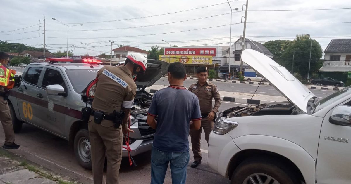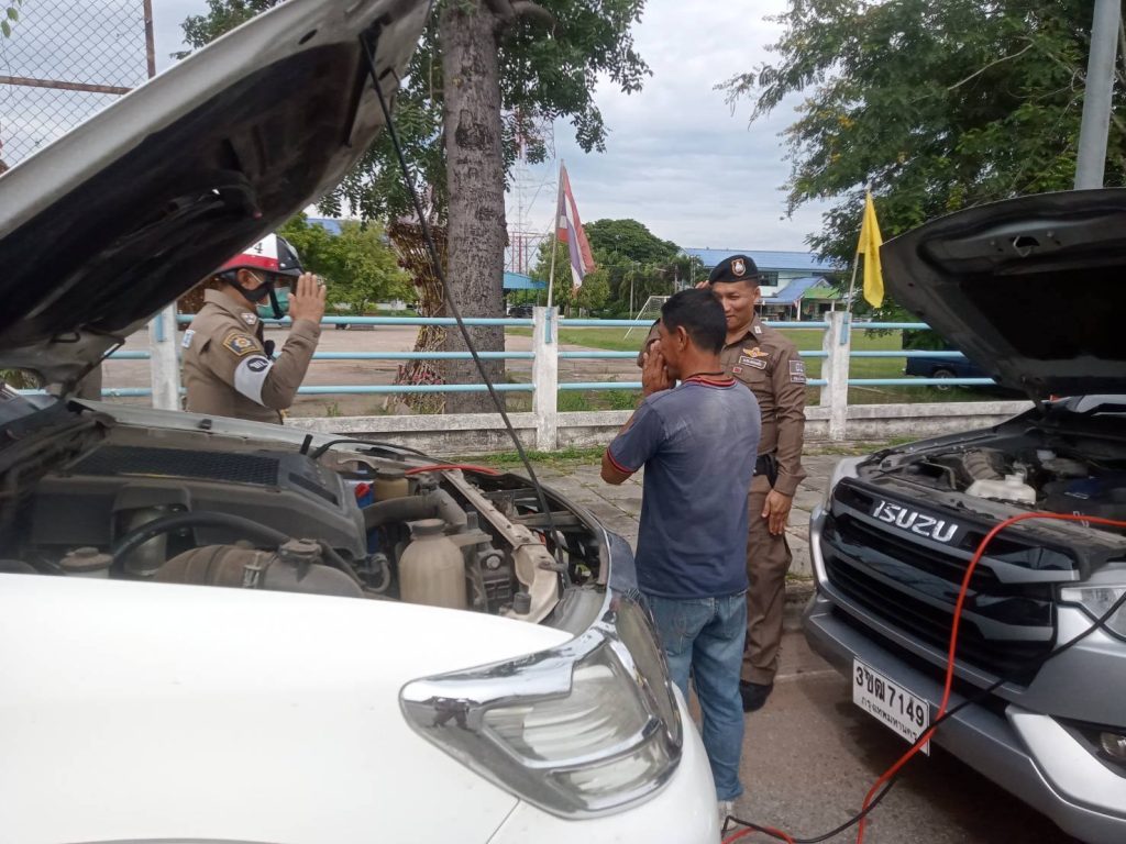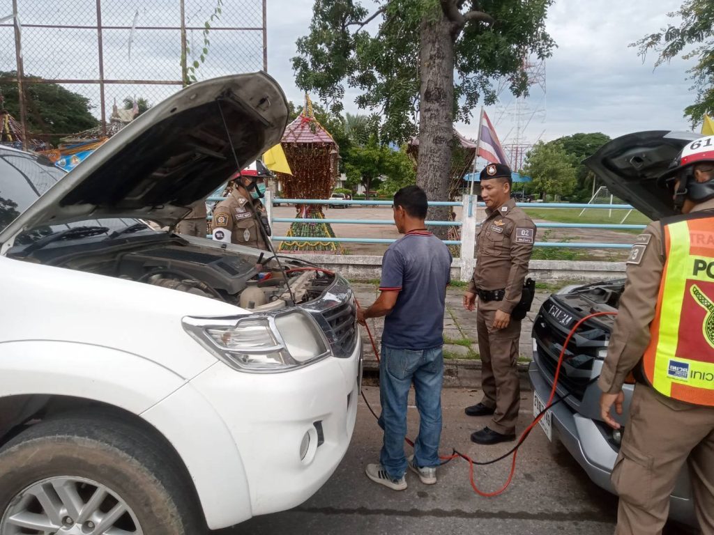 พ.ต.ท.ประสาร ฉิมพลี สวป.สภ.บ้านฝาง พร้อมด้วยชุดจราจร สภ.บ้านฝาง ได้ให้การช่วยเหลือประชาชน รถยนต์สตาร์ทไม่ติด บริเวณถนนมลิวัลย์ หน้าที่ว่าการอำเภอบ้านฝาง โดยเข้าช่วยเหลือพ่วงแบตเตอรี่รถยนต์ จนกระทั่งเครื่องยนต์สตาร์ทติดและสามารถเดินทางต่อไปได้