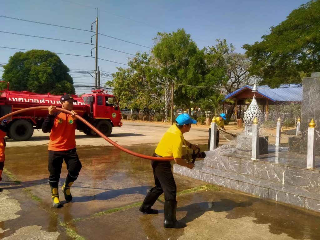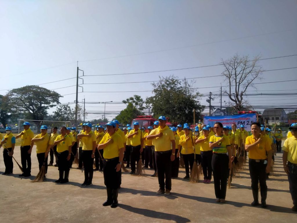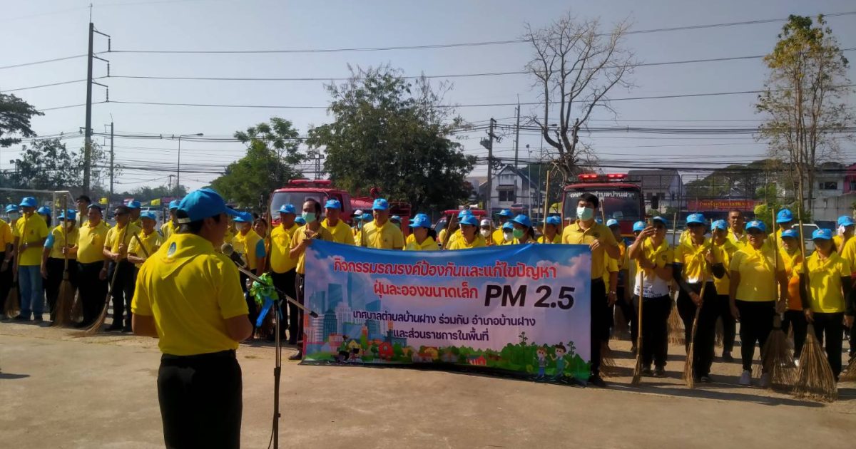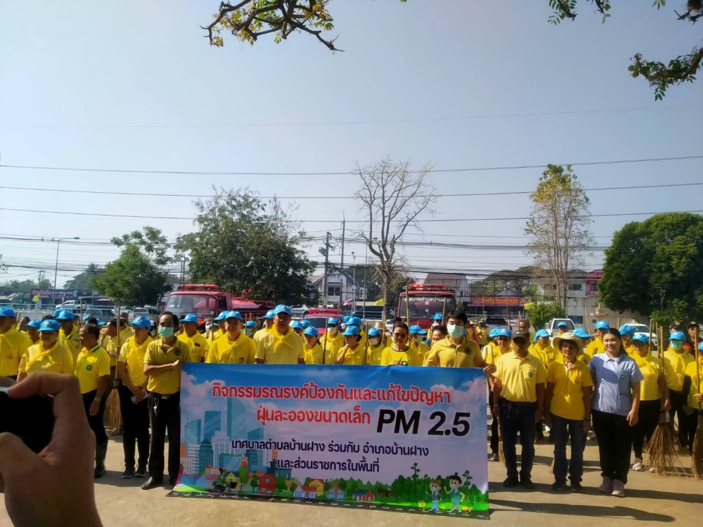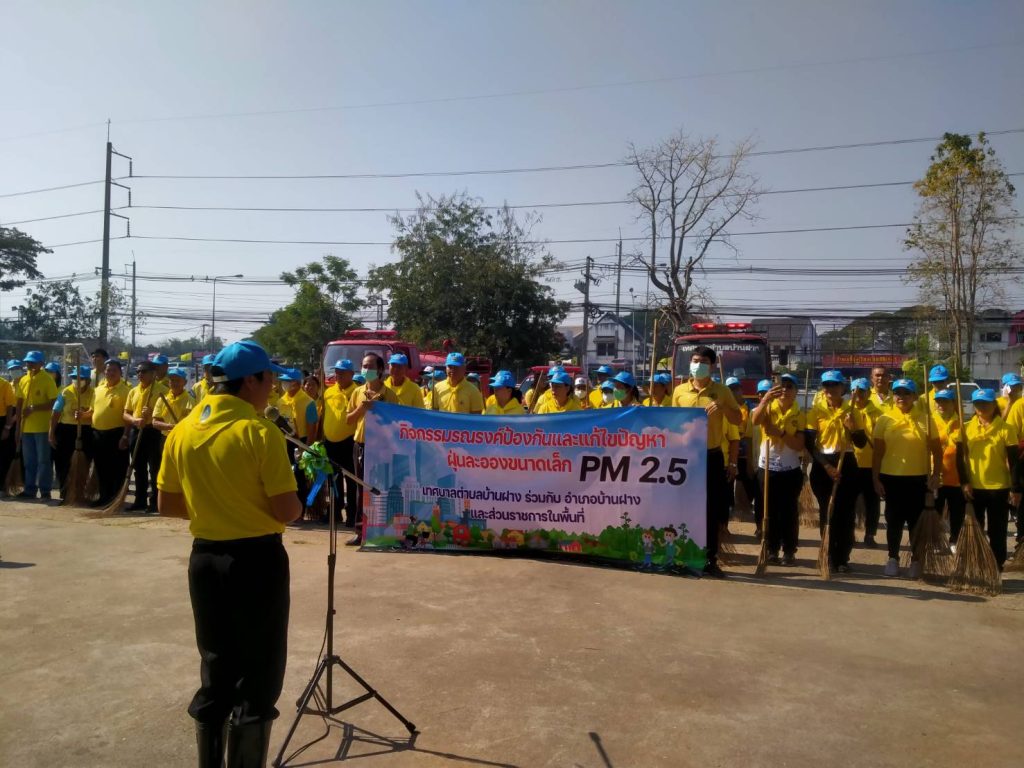 สวป. สภ.บ้านฝาง พร้อมด้วย ร.ต.อ.สังวาน เนื่องชมภู รอง สว.ธร.สภ.บ้านฝาง และ ว.30 ข้าราชการตำรวจจิตอาสา สภ.บ้านฝาง ร่วมกิจกรรม ” รวมพลังลดฝุ่น PM 2.5 ” เพื่อป้องกันและแก้ไขปัญหาฝุ่นละอองขนาดเล็ก (PM 2.5) ในพื้นที่ ณ ถนนสาธารณะ หน้าที่ว่าการอำเภอบ้านฝาง