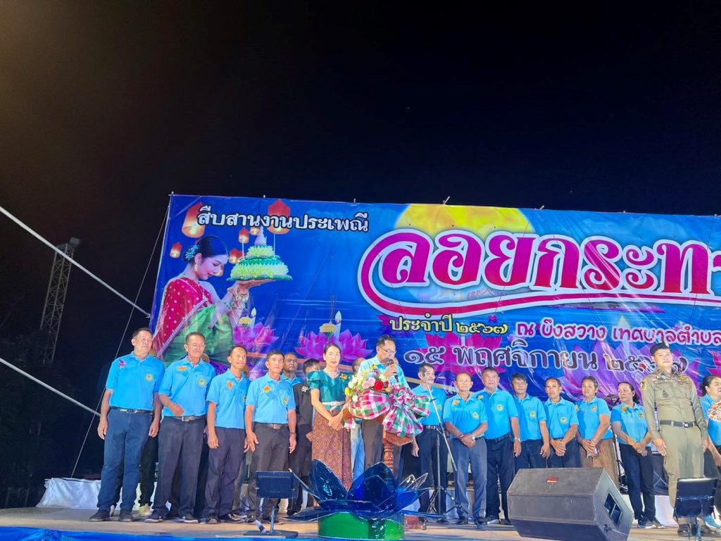 พ.ต.ท.ธราดล ดีเเป้น รอง ผกก.ป.สภ.บ้านฝาง พร้อม นายชัยดี รัตนปรีชา นายกเทศมนตรีตำบลบ้านฝาง ประธาน กต.ตร.สภ.บ้านฝาง เเละคณะกรรมการ กต.ตร.สภ.บ้านฝาง เข้าร่วมพิธีเปิดงานลอยกระทง ประจำปี 2567 ของเทศบาลตำบลบ้านฝาง เพื่อเป็นการบูชาพระอุปคุต เพื่อแสดงความขอบคุณพระแม่คงคา ซึ่งเป็นแหล่งน้ำให้มนุษย์ได้ใช้ประโยชน์ต่างๆ รวมทั้งขอขมาที่ได้ทิ้งสิ่งปฏิกูลลงไป เพื่อสะเดาะเคราะห์ ลอยทุกข์โศกโรคภัยต่างๆ เพื่อเป็นการส่งเสริมการท่องเที่ยว เพื่อเป็นการเสริมสร้างความสมัคร สมาน สามัคคีของประชาชน และเพื่อให้พี่น้องประชาชนได้มาร่วมกันสืบสานขนมธรรมเนียมประเพณีและอนุรักษ์วัฒนธรรมอันดีงามของไทยไว้ให้คงอยู่กับท้องถิ่นสืบต่อไป ณ บึงสวาง อําเภอบ้านฝาง จังหวัดขอนแก่น