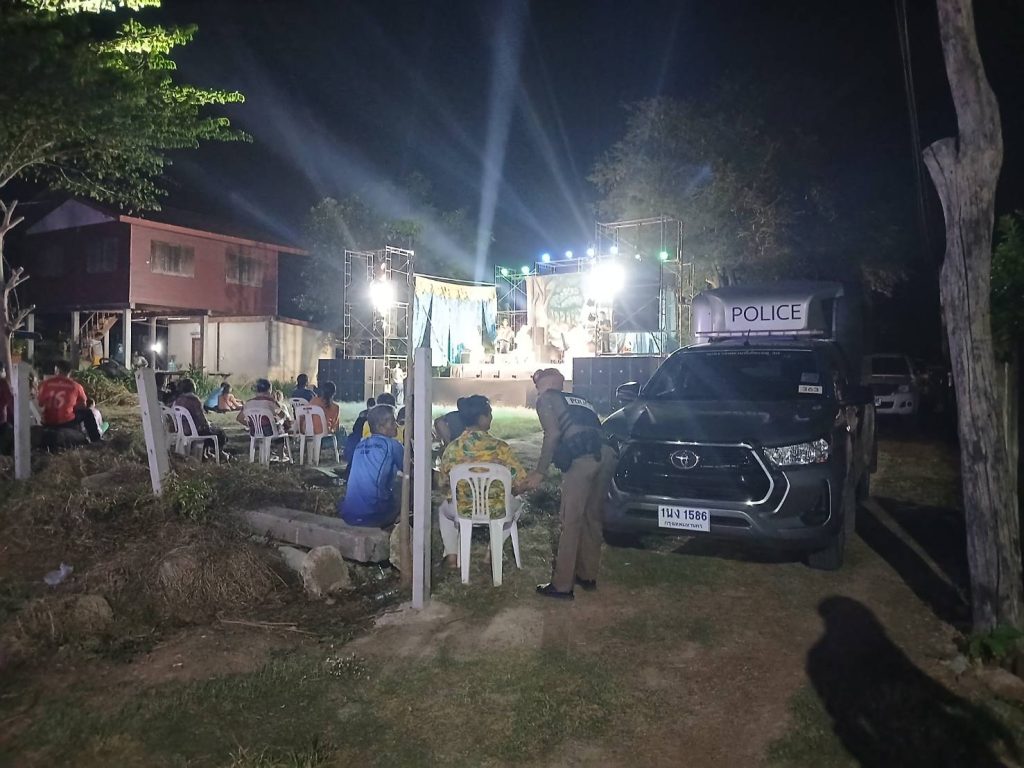 ร.ต.ท.กันต์ศักดิ์ คุ้มจันดี รอง.สว(ป.)สภ.บ้านฝาง พร้อมพวกจำนวน 4 นาย ว.4 รักษาความปลอดภัยงานบุญอุทิศส่วนกุศล มีวงดนตรีมหรสรรพหมอลำซิ่ง บริเวณบ้านโสกดั่ง ม.3 ต.โคกงาม อ.บ้านฝาง จ.ขอนแก่น ตั่งแต่เวลา 21.00 – 01.00 น