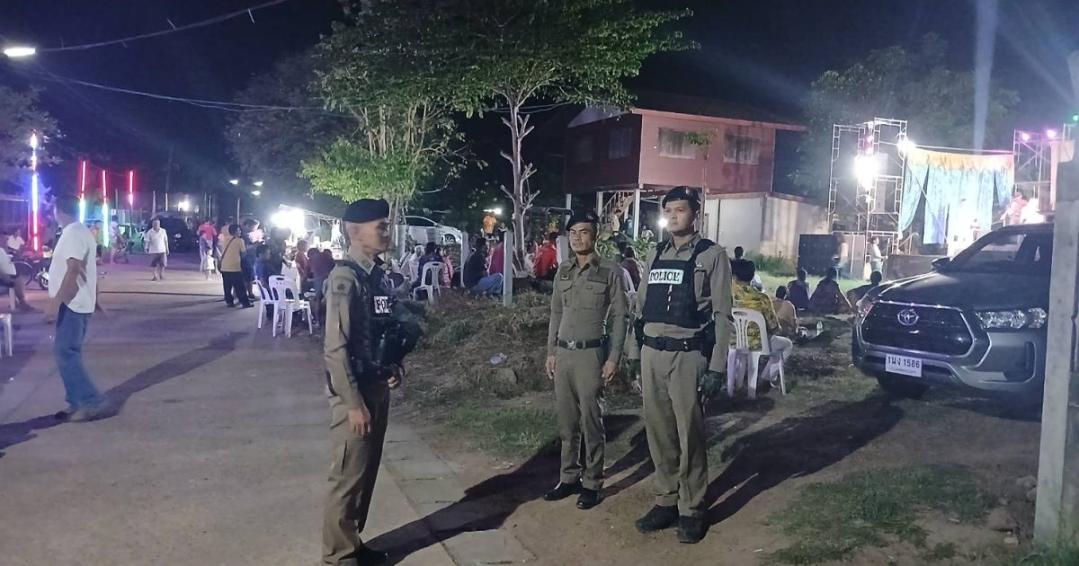 ร.ต.ท.กันต์ศักดิ์ คุ้มจันดี รอง.สว(ป.)สภ.บ้านฝาง พร้อมพวกจำนวน 4 นาย ว.4 รักษาความปลอดภัยงานบุญอุทิศส่วนกุศล มีวงดนตรีมหรสรรพหมอลำซิ่ง บริเวณบ้านโสกดั่ง ม.3 ต.โคกงาม อ.บ้านฝาง จ.ขอนแก่น ตั่งแต่เวลา 21.00 – 01.00 น