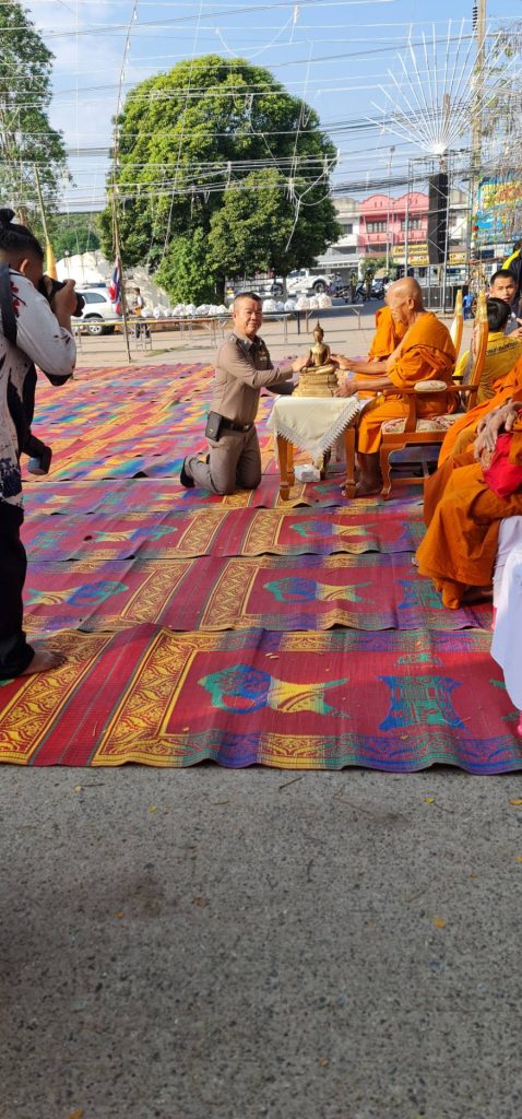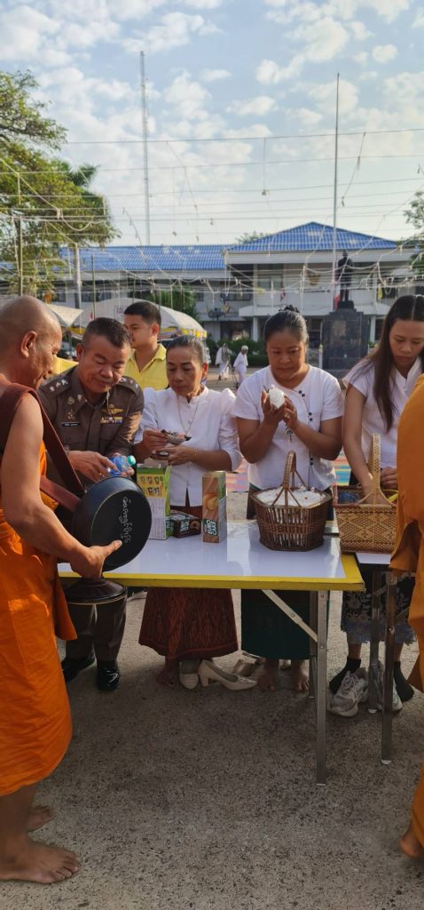 🧑🦲วันนี้(25มี.ค.67)เวลา07.00น.โดย พ.ต.อ.อิทธิกร อุ่นประกอ ผกก.สภ.บ้านฝางและคุณนาย นำข้าราชการตำรวจ สภ.บ้านฝาง เข้าร่วมทำบุญตักบาตรกับส่วนราชการต่างๆและประชาชน ณ บริเวณหน้าที่ว่าการอำเภอบ้านฝาง ในงานพิธีพุทธาภิเษกพระพุทธมัญเชฏฐามหามงคลภูวดลประชานาถ(พระพุทธฝางมหามงคล)ซึ่งเป็นพระพุทธรูปคู่บ้านคู่เมืองประจำอำเภอบ้านฝาง ประดิษฐานอยู่หน้าที่ว่าการอำเภอบ้านฝาง เพื่อให้ประชาชนชาวพุทธได้สักการะกราบไหว้บูชาเพื่อความเป็นสิริมงคล