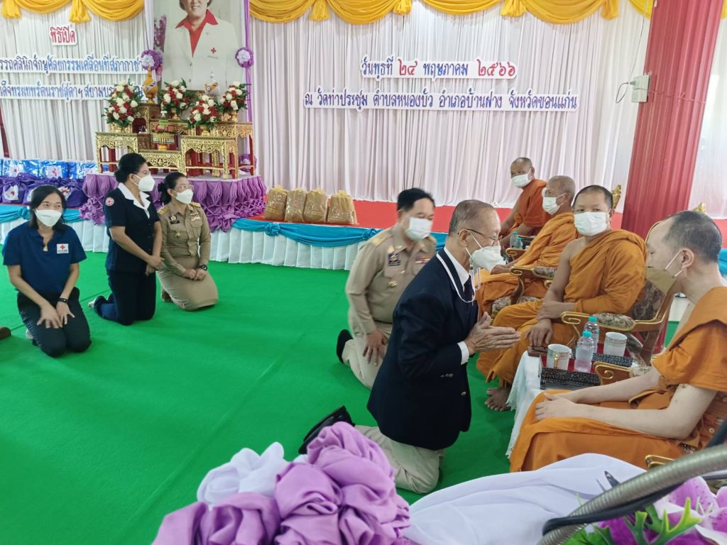 สำนักงานเหล่ากาชาดจังหวัดขอนแก่น , นายกเหล่ากาชาดจังหวัดขอนแก่น , ปลัดอาวุโสอำเภอบ้านฝาง , ผู้เชี่ยวชาญพิเศษนายแพทย์ 9 , สาธารณสุขอำเภอบ้านฝาง , การแพทย์ผู้ด้อยโอกาส , ผอ.รพ.บ้านฝาง และ ผอ.รพ.สต.ในเขตพื้นที่บ้านฝาง , ผู้นำชุมชนทุกแห่งในพื้นที่บ้านฝาง ร่วมให้การต้อนรับ พลโทนายแพทย์ อำนาจ บาลี ผู้อำนวยการสำนักงานบรรเทาทุกข์และประชานามัยพิทักษ์ เดินทางมาเป็นประธานพิธีเปิดโครงการรถคลินิกจักษุศัลยกรรมเคลื่อนที่สภากาชาดไทย ในสมเด็จพระเทพรัตนราชสุดาฯ สยามบรมราชกุมารี ระหว่างวันที่ 22-26 พ.ค. 2566 พร้อมกับมอบชุดของขวัญสภากาชาดไทย ให้กับประชาชนที่เข้ามาใช้บริการ