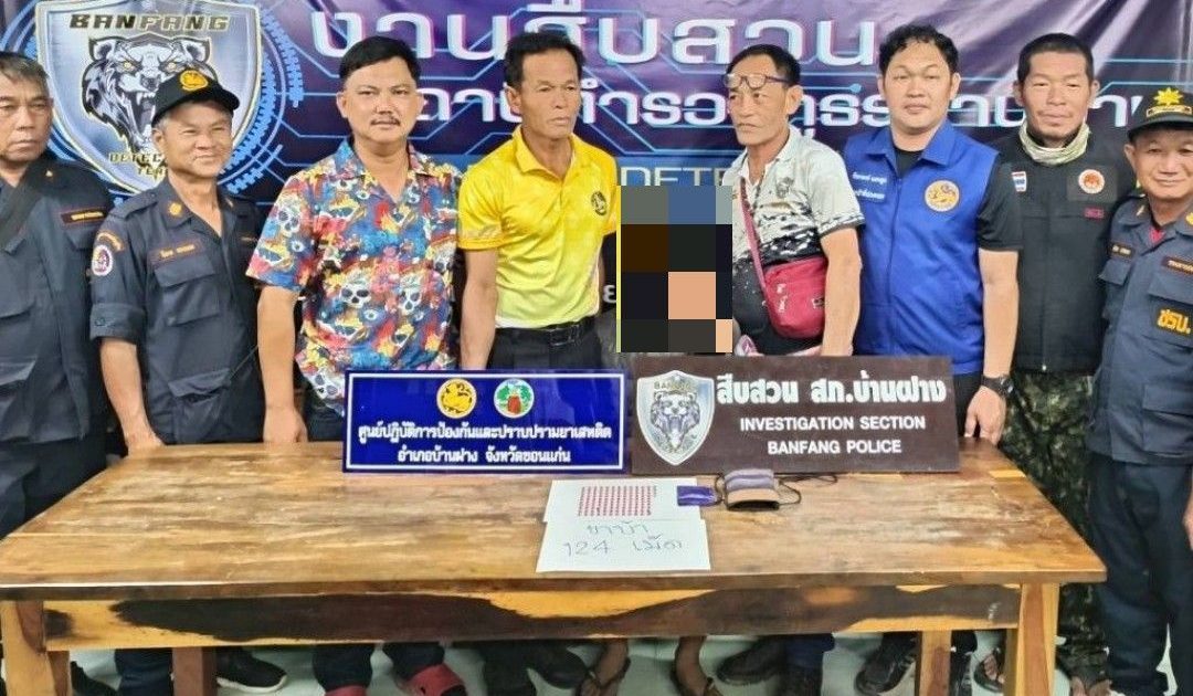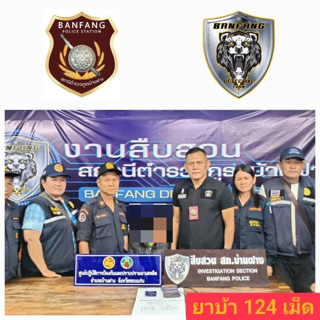 อายุ 19 ปีโดยกล่าวหาว่า “จำหน่ายยาเสพติดให้โทษประเภท 1 (ยาบ้าหรือเมทแอมเฟตามีน) โดยการมีไว้เพื่อจำหน่าย , เป็นผู้ขับขี่รถจักรยานยนต์ขณะมีสารเสพติดให้โทษประเภท 1 (เมทแอมเฟตามีน) ในร่างกายโดยผิดกฎหมาย และเสพยาเสพติดให้โทษประเภท 1(เมทแอมเฟตามีน)โดยฝ่าฝืนต่อกฎหมาย” ของกลาง ยาบ้า 124 เม็ด สถานที่จับกุม ม.6 ต.ป่าหวายนั่ง อ.บ้านฝาง จ.ขอนแก่น นำตัวผู้ถูกจับพร้อมด้วยพยานวัตถุ และของกลางทั้งหมดนำส่ง พงส.เวรฯ เพื่อดำเนินการตามกฎหมายต่อไป