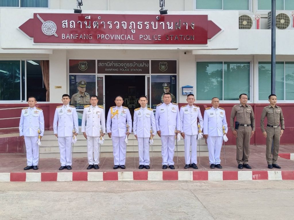 พ.ต.อ.สุรศักดิ์ มโนทัย รอง ผบก.ภ.จว.ขอนเเก่น รรท.ผกก.สภ.บ้านฝาง พ.ต.ท.เทียรไชย ชาวส้าน รอง ผกก.(สอบสวน) สภ.บ้านฝาง เเละข้าราชการตำรวจ สายงานสอบสวน เเละอำนวยการ สภ.บ้านฝาง ร่วมงานพิธีทำบุญตักบาตร และวางพวงมาลา เนื่องในพิธีน้อมรำลึกในพระมหากรุณาธิคุณเนื่องใน “วันนวมินทรมหาราช” วันคล้ายวันสวรรคตพระบาทสมเด็จพระบรมชนกาธิเบศรมหาภูมิพลอดุลยเดชมหาราช บรมนาถบพิตร 13 ต.ค.67