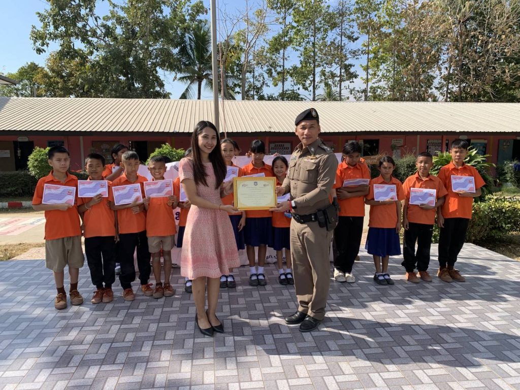 ร่วมพิธีมอบใบประกาศนีบัตรให้แก่คณะครู และมอบวุฒิบัตรให้แก่นักเรียนชั้น ป.5 จำนวน 13 คนตามโครงการครูแดร์ หรือ D.A.R.E. (Drug Abuse Resistance Education) โครงการการศึกษาเพื่อต่อต้านการใช้ยาเสพติดในเด็กนักเรียน