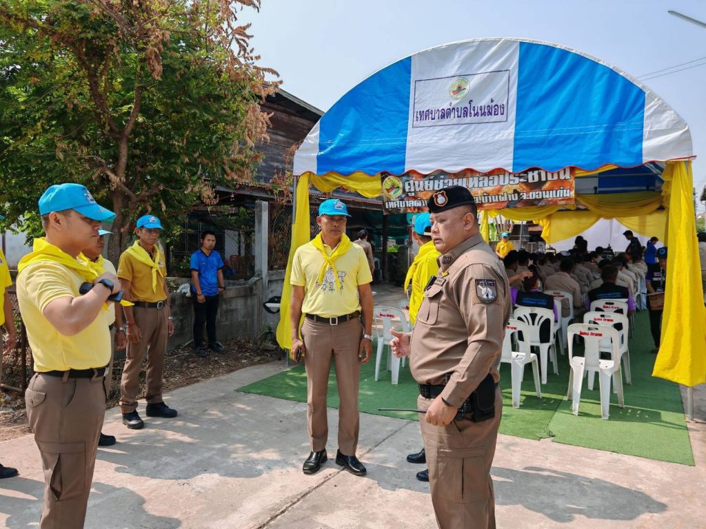 พ.ต.ท.สุรสิทธิ์ สูตรสุวรรณ สวป.สภ.บ้านฝาง และ จนท.ตร.ชุด ชมส. จนท.ตร.จิตอาสา และข้าราชการตำรวจ สภ.บ้านฝาง , หน.ส่วนราชการ ,ผู้นำชุมชน