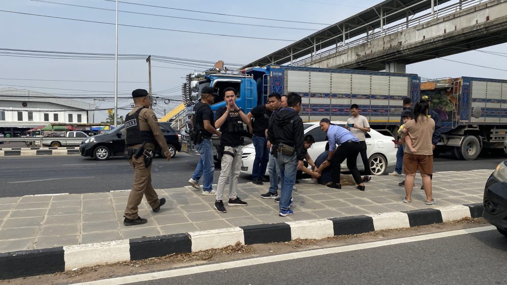 ร่วมสกัดจับผู้ต้องสงสัยค้ายาเสพติด ที่บริเวณสามแยกไฟแดง หน้าสาธารณสุขอำเภอบ้านฝาง ถนนมะลิวัลย์ ต.บ้านฝาง อ.บ้านฝาง จ.ขอนแก่น