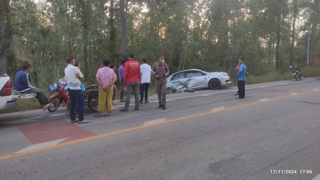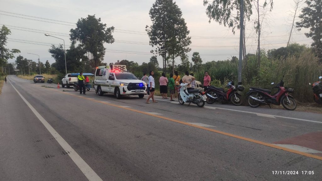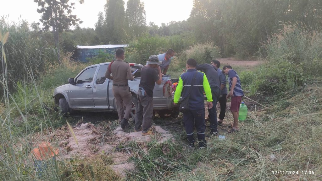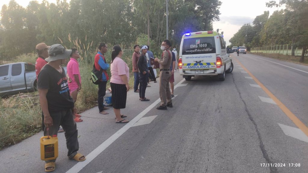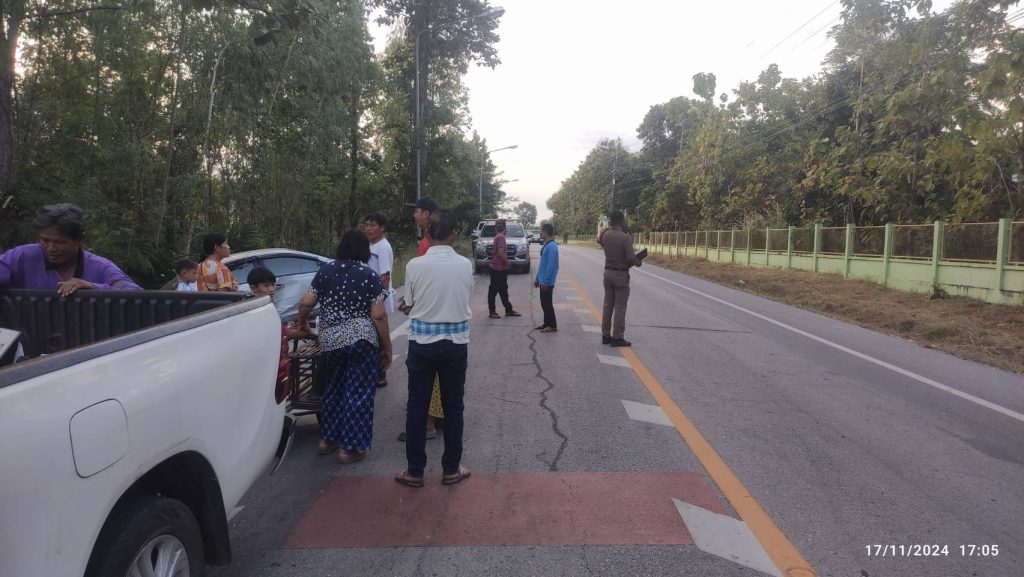 ร.ต.อ. เสวต เเก้วพิลา รอง สว.(สอบสวน) สภ.บ้านฝาง ปฏิบัติหน้าที่ร้อยเวรพนักงานสอบสวน ตรวจพื้นที่เกิดเหตุ ว.40 รถยนต์กะบะ+เก๋ง มีผู้บาดเจ็บ บริเวณ ถนนระหว่าง บ้านป่าหวายนั่ง-โนนรัง ต.ป่าหวยนั่ง อ.บ้านฝาง จว.ขอนเเก่น