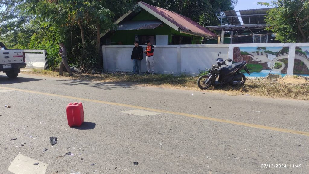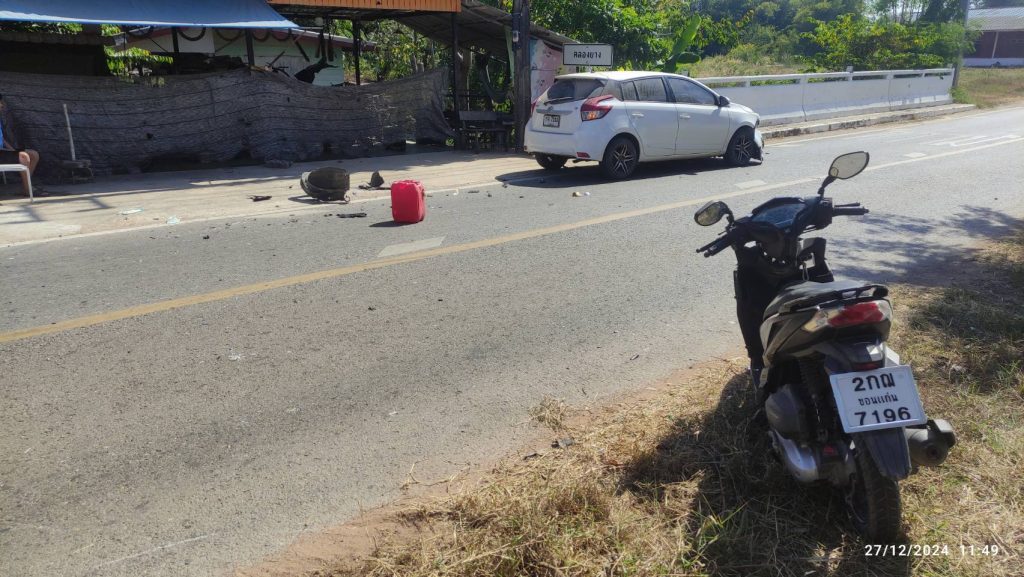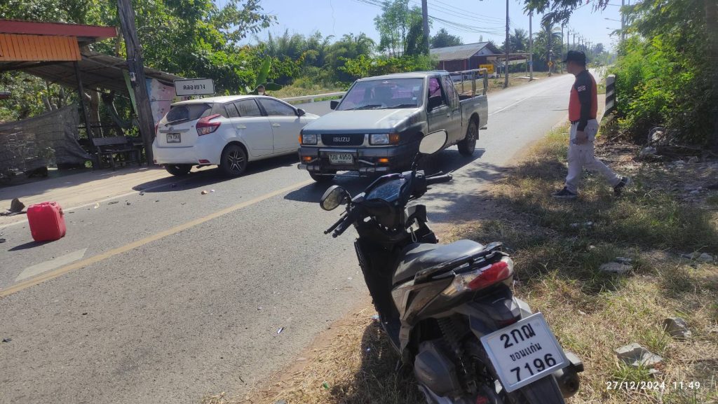 วันที่ 27 ธันวาคม 2567 เวลา 12.00 ร.ต.อ.เสวต เเก้วพิลา รอง สว.(สอบสวน )สภ.บ้านฝาง ปฏิบัติหน้าที่พนักงานร้อยเวรสอบสวน ตรวจสอบพื้นที่เกิดเหตุอุบัติเหตุ รถกะบะชนกับรถจักรยานยนต์ มีผู้บาดเจ็บ บริเวณ สี่แยก พระเวสสันดร ถนน หลังอำเภอบ้านฝาง ต.บ้านฝาง อ.บ้านฝาง จว.ขอนเเก่น