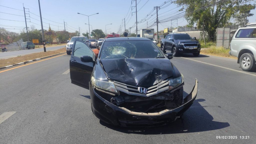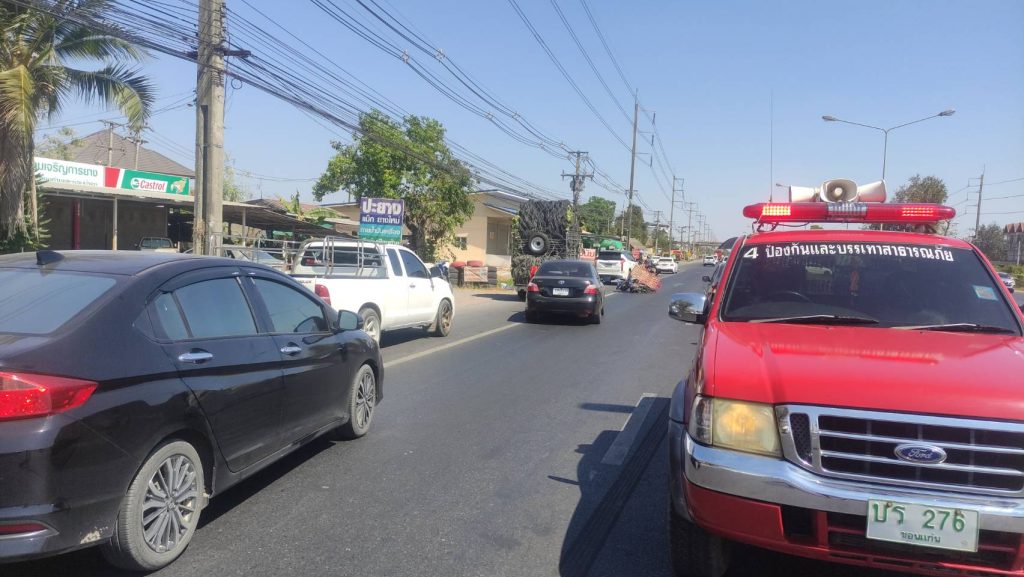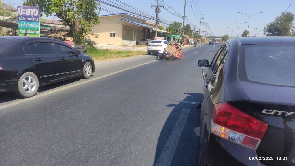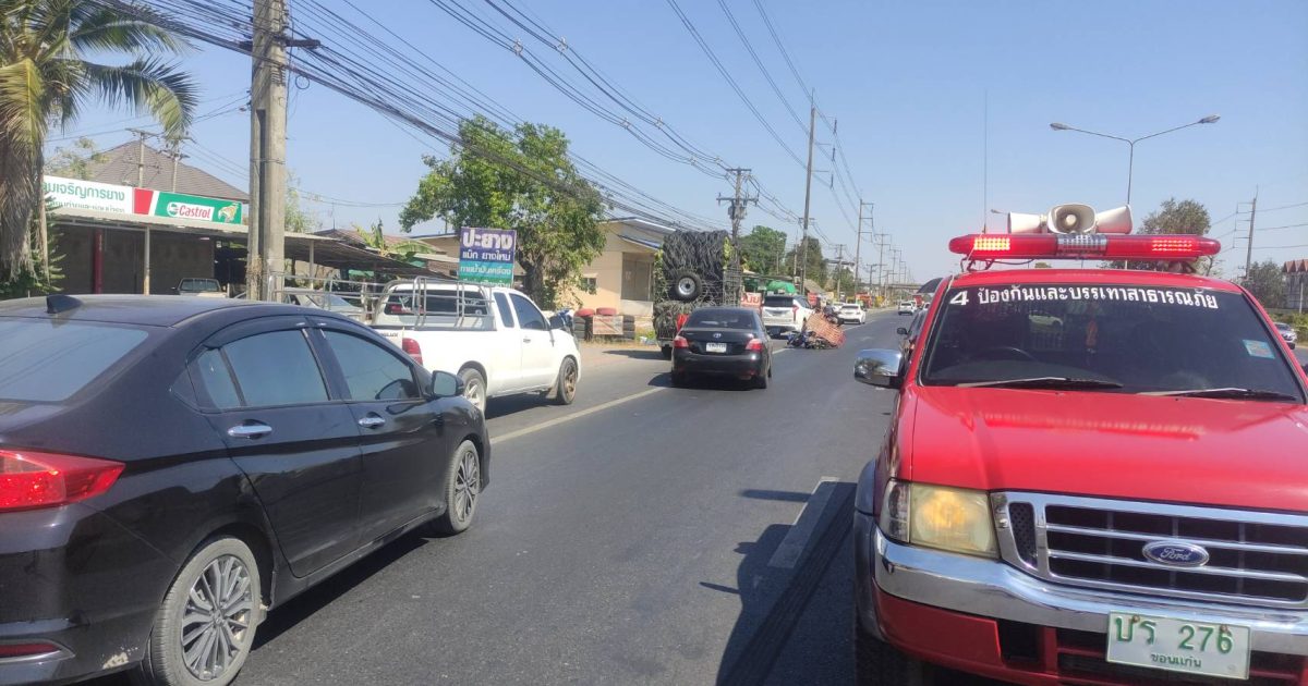 ร.ต.อ.เสวต เเก้วพิลา รอง สว.(สอบสวน )สภ.บ้านฝาง ปฏิบัติหน้าที่พนักงานร้อยเวรสอบสวน ได้ออกตรวจพื้นที่เกิดอุบัติเหตุ รถเก๋ง-กับรถ จยย.พ่วงมีผู้บาดเจ็บ บริเวณจุดกลับรถก่อนถึง รพ.บ้านฝาง ถนนมะลิวัลย์ขาเข้า