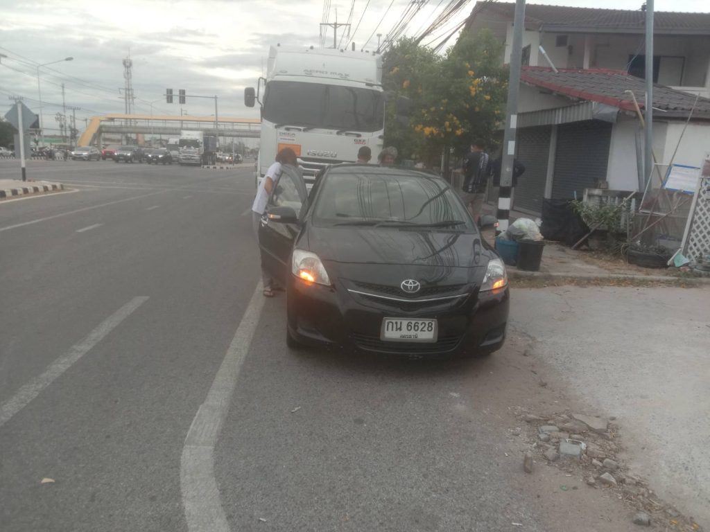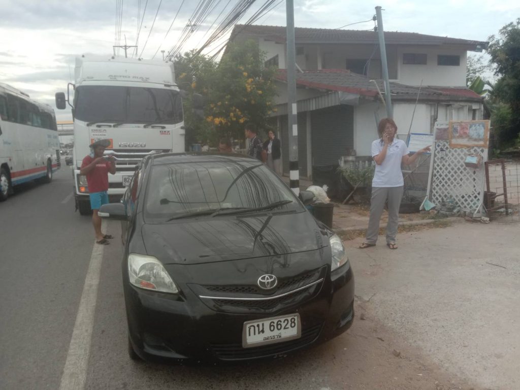 ร.ต.อ.เสวต เเก้วพิลา รอง สว.(สอบสวน )สภ.บ้านฝาง ปฏิบัติหน้าที่พนักงานร้อยเวรสอบสวน ตรวจสอบพื้นที่เหตุรถชนสี่เเยกไฟเเดง