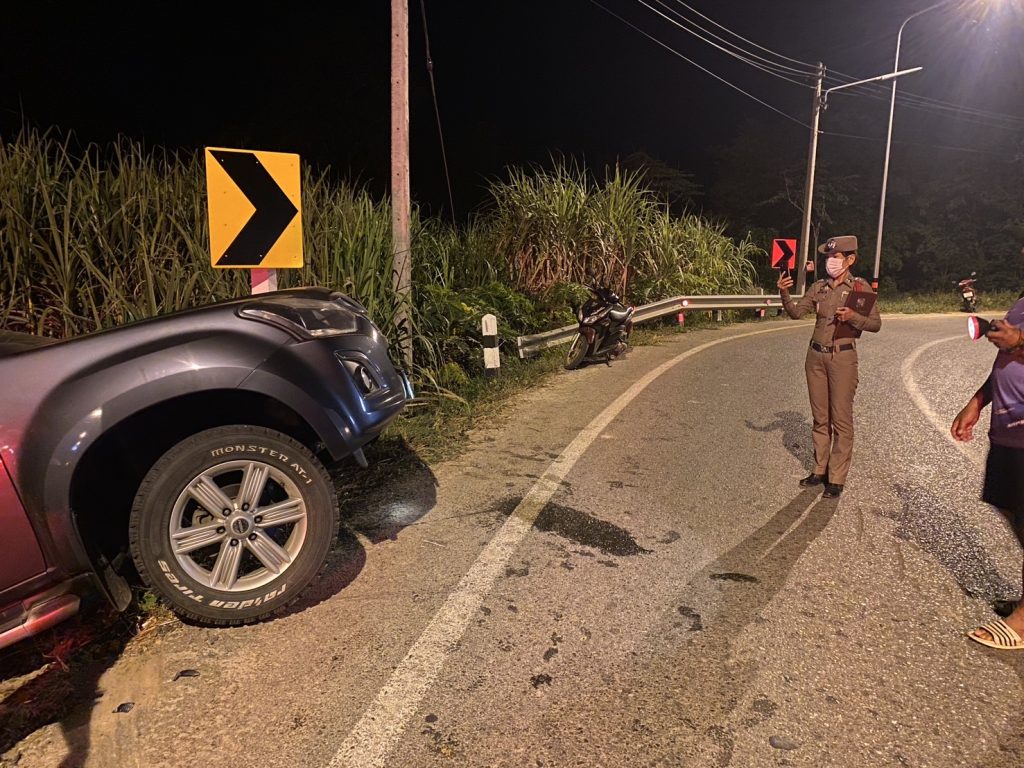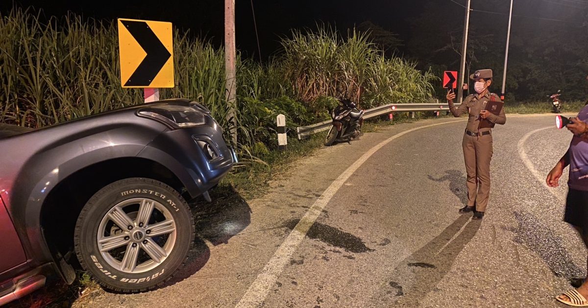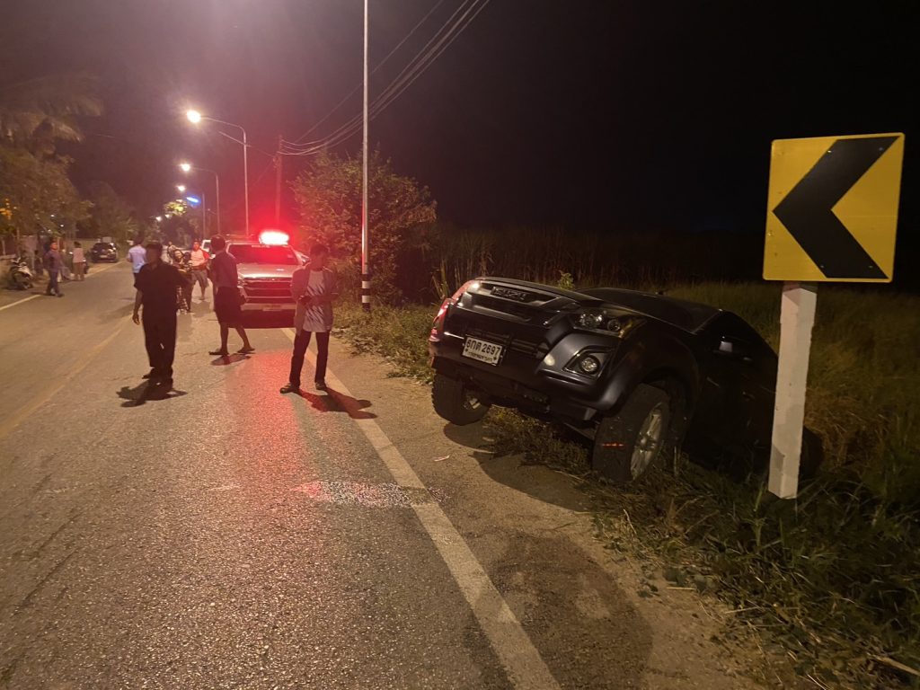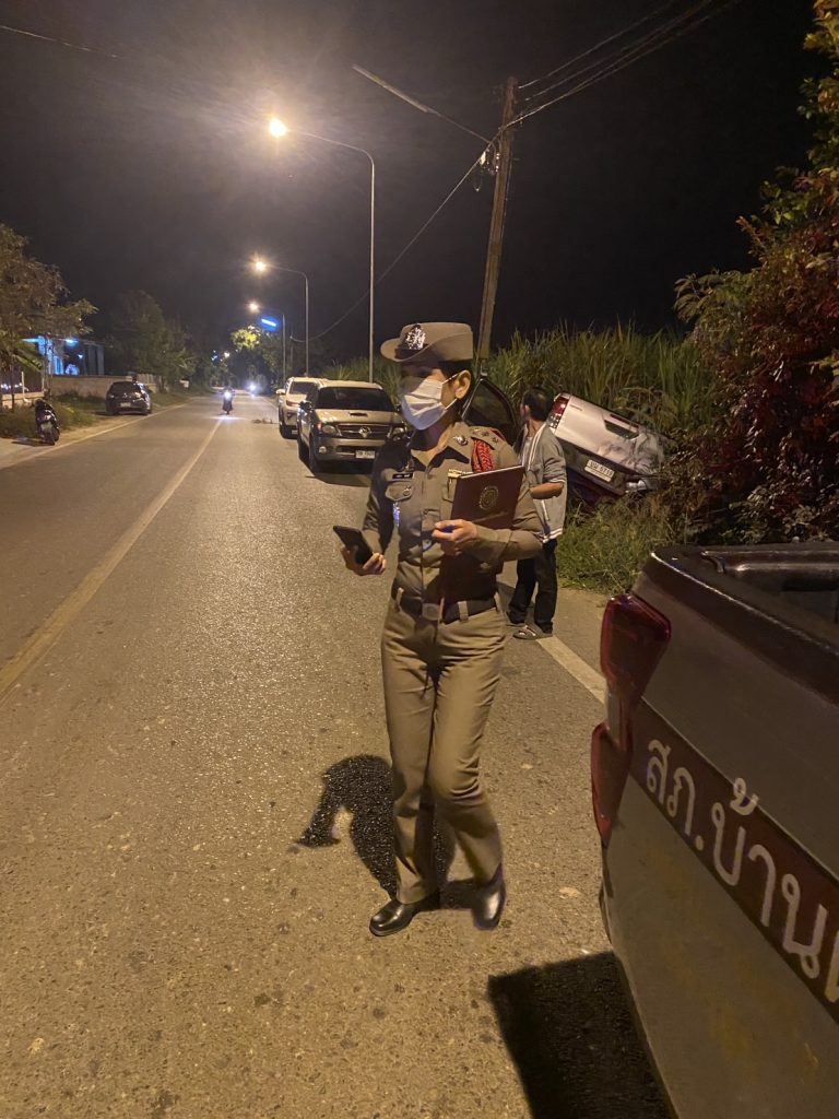 ร.ต.อ.หญิง มะลิกา พิมพ์ลี รอง สว.(สอบสวน) สภ.บ้านฝาง ปฏิบัติหน้าที่ร้อยเวรพนักงานสอบสวน ตรวจเหตุเกิดอุบัติเหตุทางโค้ง บ้านโคกงาม ต.โคกงาม อ.บ้านฝาง จว.ขอนเเก่น