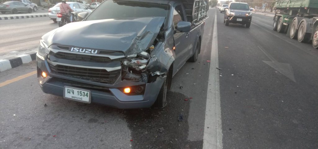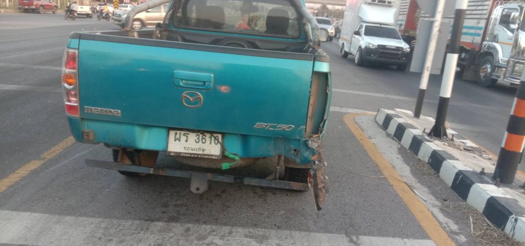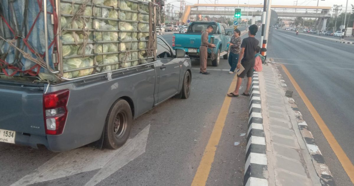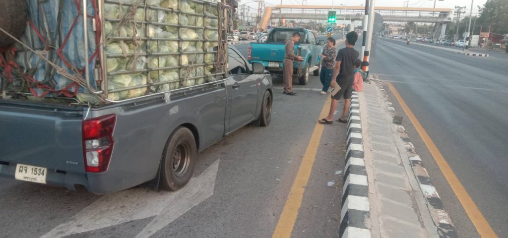 พ.ต.ต.ธิปชลัช ทองธรรมชาติ สว.(สอบสวน) สภ.บ้านฝาง ปฏิบัติหน้าที่ร้อยเวรพนักงานสอบสวน ตรวจพื้นที่เกิดเหตุรถรถยนต์ ชนท้าย ตรงบริเวณ สี่เเยกไฟแดง ตลาดสด ต.บ้านฝาง