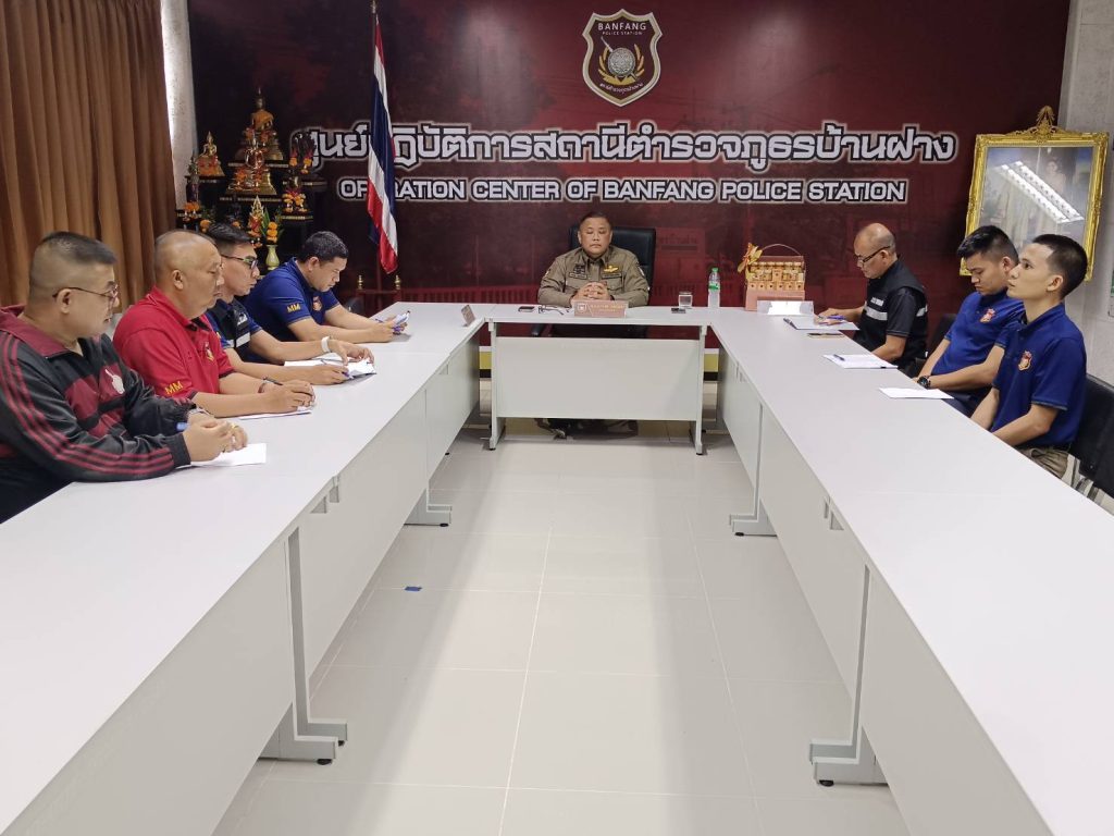 พ.ต.อ.กรภพ เนตรไธสง ผกก.สภ.บ้านฝาง ได้เรียกประชุม ข้าราชการตำรวจ สายงานอำนวยการ ณ ห้องประชุมชั้น 3 สภ.บ้านฝาง เข้าร่วมประชุม อบรม เรื่อง ส่งเสริมคุณธรรมจริยธรรมและจรรยาบรรณข้าราชการตำรวจ ให้กับข้าราชการตำรวจในสังกัด เเละพูดคุยรับฟังปัญหา ในการปฏิบัติหน้าที่เเละเเผนกงาน พร้อมรับฟังเเก้ไขเเต่ละเเผนกงาน