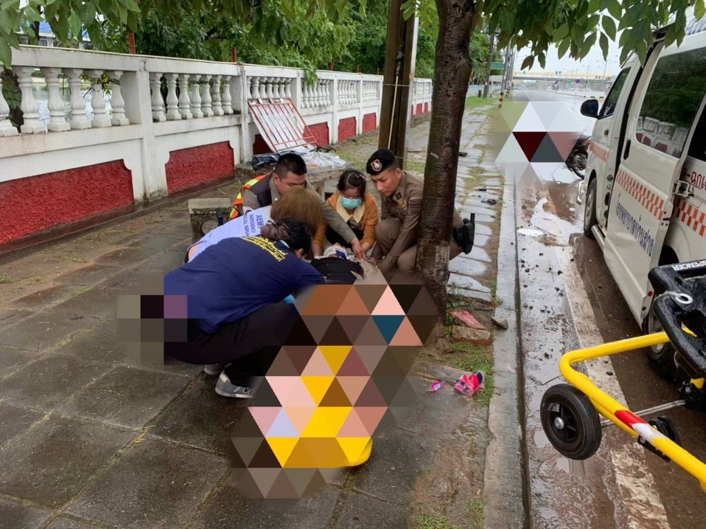 พ.ต.ท.ประสาร ฉิมพลี สวป.สภ.บ้านฝาง พร้อมด้วยชุดจราจร สภ.บ้านฝาง ได้เข้าช่วยเหลืออุบัติเหตุรถจักรยานยนต์ เสียหลักลงข้างถนน บริเวณถนนมะลิวัลย์ หน้า สภ.บ้านฝาง มีผู้ได้รับบาดเจ็บ ได้แจ้งประสานรถพยาบาลนำส่ง รพ.บ้านฝาง เพื่อรับการรักษาตัว ต่อไป