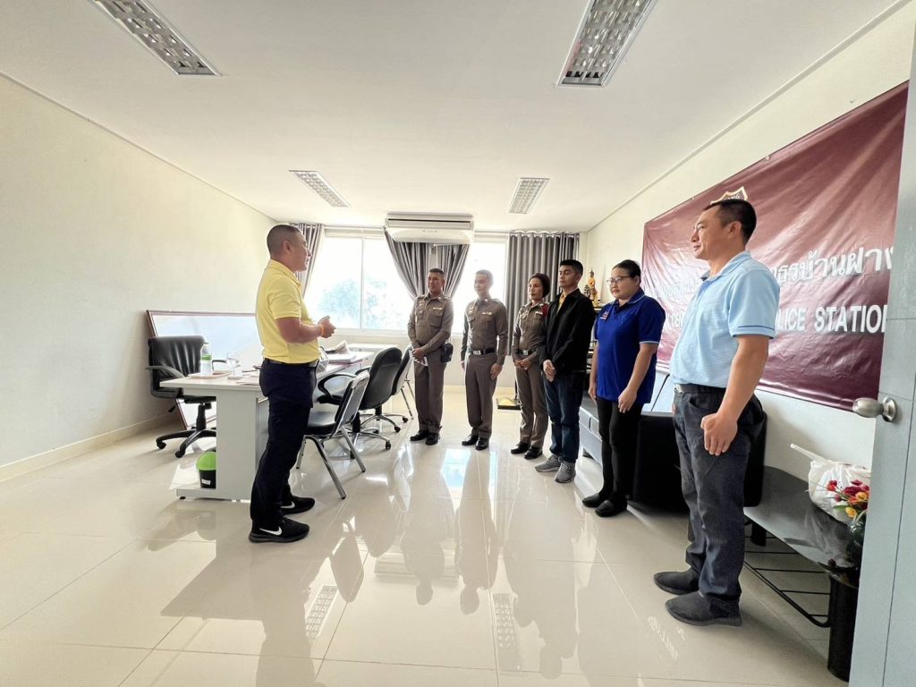 พ.ต.ท.เทียรไชย ชาวส้าน รอง ผกก.(สอบสวน) สภ.บ้านฝาง พ.ต.ต.ธิปชลัช ทองธรรมชาติ สว.(สอบสวน) สภ.บ้านฝาง เเละข้าราชการตำรวจ สายงานสอบสวน เข้าพบ พ.ต.อ.สุรศักดิ์ มโนทัย รอง ผบก.ภ.จว.ขอนเเก่น รรท.ผกก.สภ.บ้านฝาง อวยพรวันปีใหม่ พ.ศ. 2568 ณ ห้องทำงาน