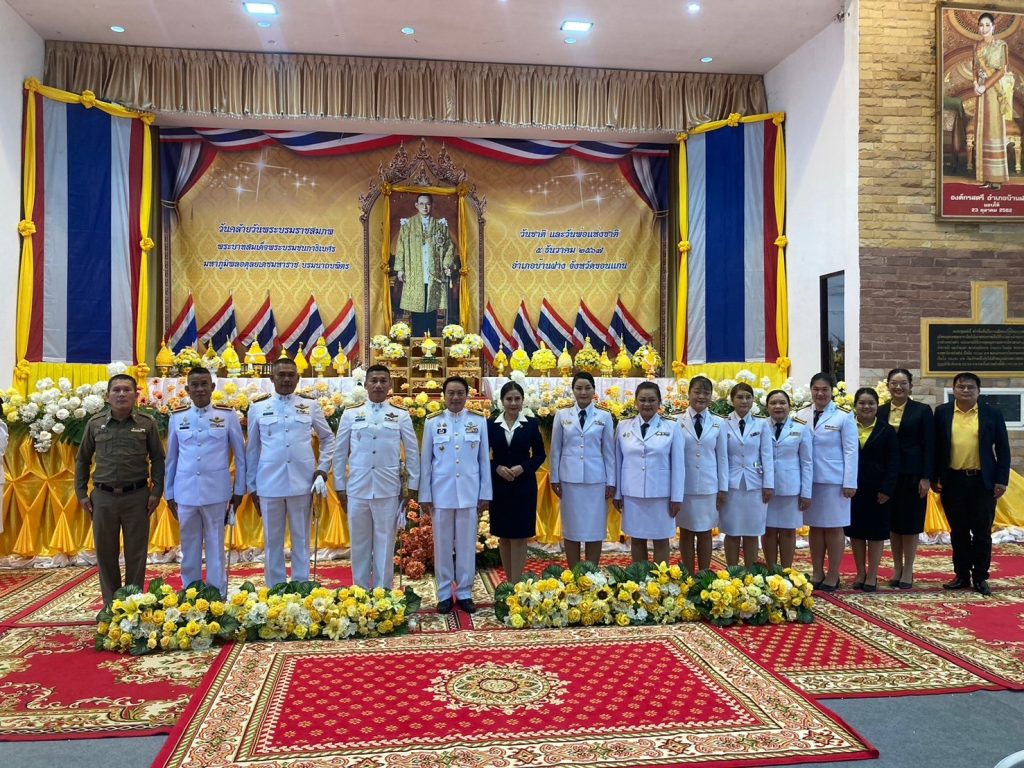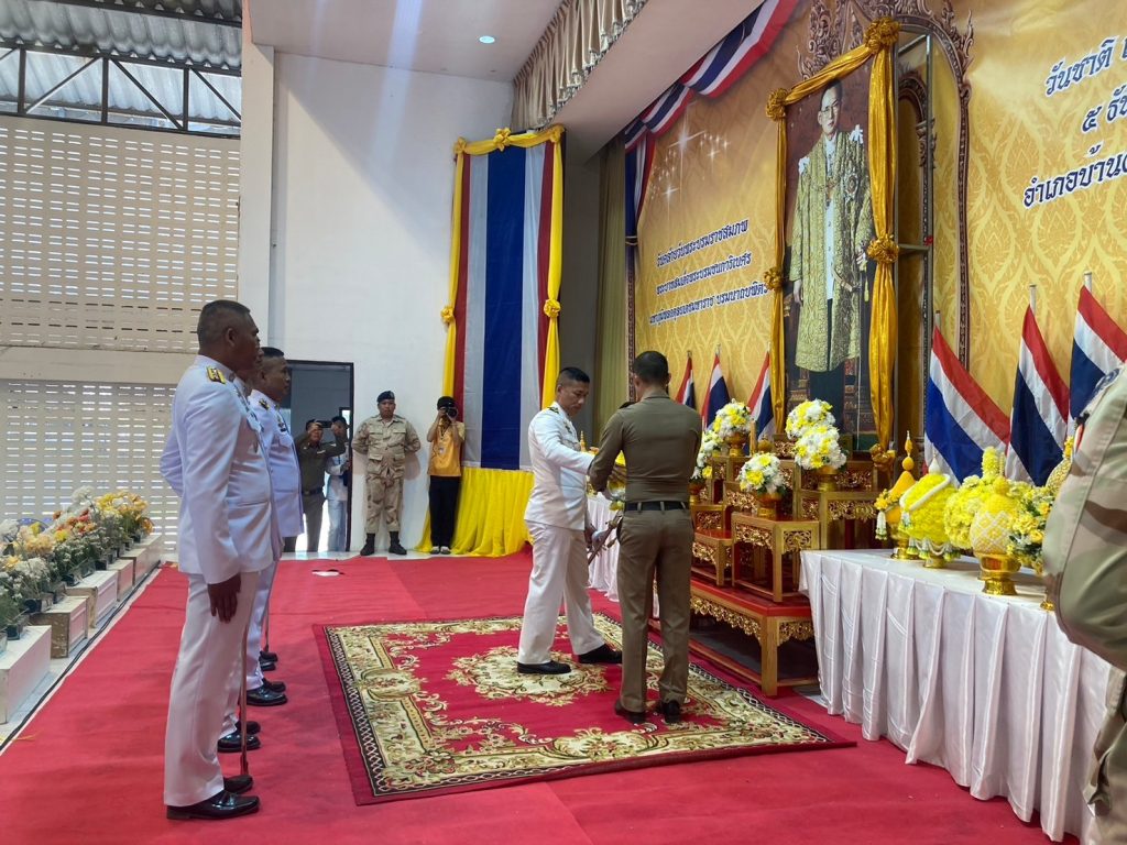พ.ต.ท.ประสาร ฉิมพลี สวป.สภ.บ้านฝาง พร้อมข้าราชการตำรวจ สายงานป้องกันปราบปราม เข้าร่วมกิจกรรมเนื่องในวันคล้ายวันพระบรมราชสมภพ พระบาทสมเด็จพระบรมชนกาธิเบศร มหาภูมิพลอดุลยเดชมหาราช บรมนาถบพิตร วันชาติ และวันพ่อแห่งชาติ 5 ธันวาคม 2567 เวลา 07.00 น. พิธีเจริญพระพุทธมนต์และทำบุญตักบาตรถวายพระราชกุศลเวลา 08.30 น. พิธีวางพานพุ่มดอกไม้ถวายราชสักการะ เพื่อแสดงความจงรักภักดีต่อสถาบันชาติ ศาสนา และพระมหากษัตริย์ และน้อมสำนึกในพระมหากรุณาธิคุณ พระบาทสมเด็จพระบรมชนกาธิเบศร มหาภูมิพลอดุลยเดชมหาราช บรมนาถบพิตร