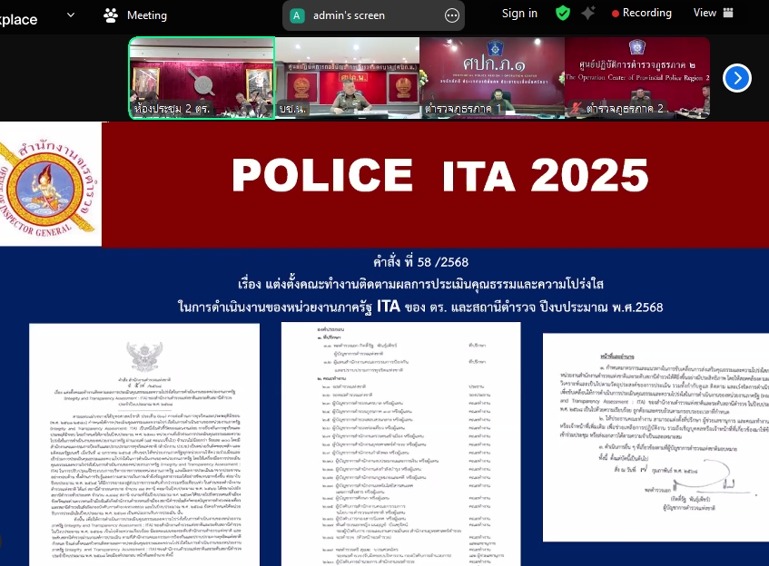 พร้อมเจ้าหน้าที่ ร่วมเฝ้าฟังการประชุม คณะทำงานการประเมินคุณธรรมและความโปร่งใสในการดำเนินงานของหน่วยงานภาครัฐ ITA ผ่านระบบ (Zoom meeting) ห้องประชุม ศปก.สภ.บ้านฝาง