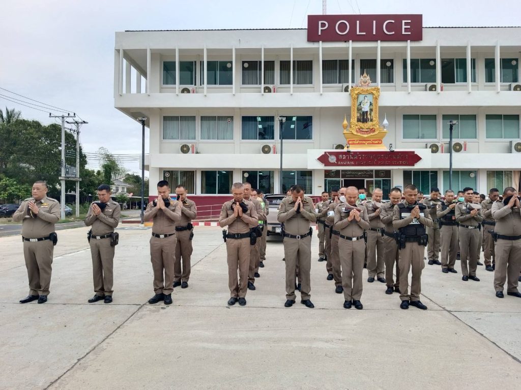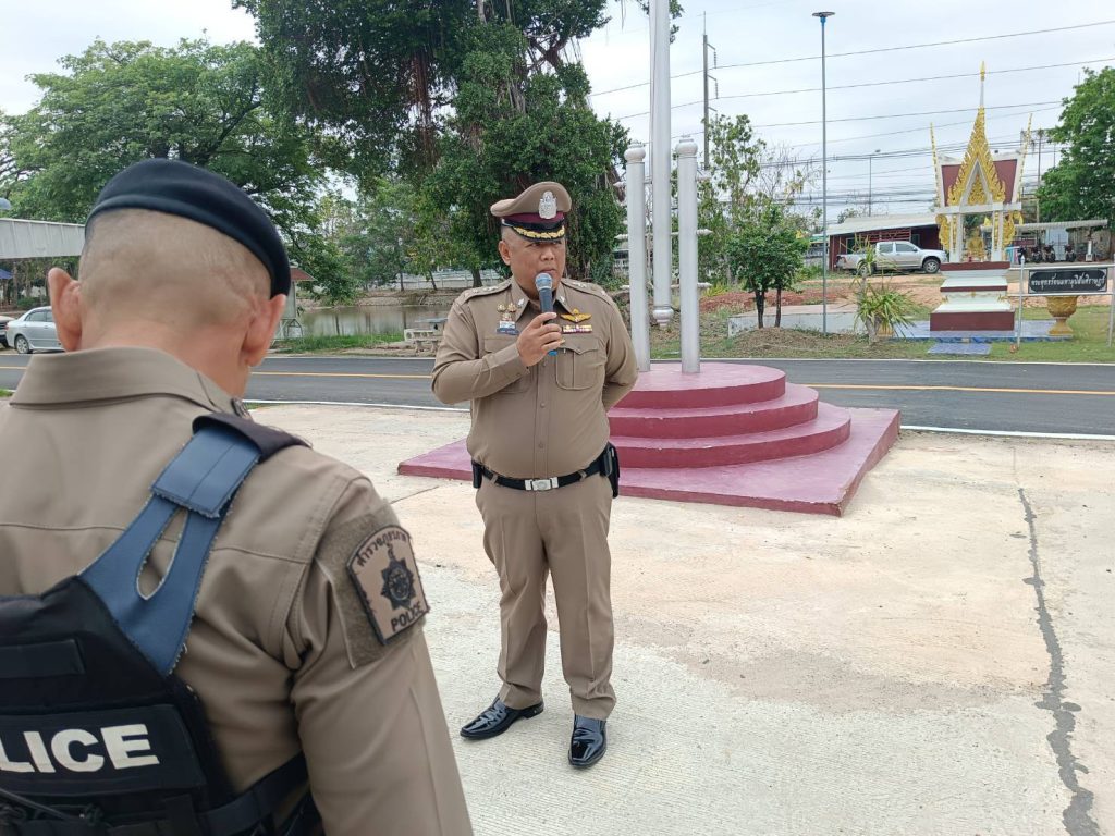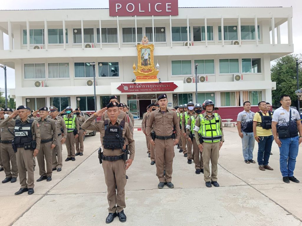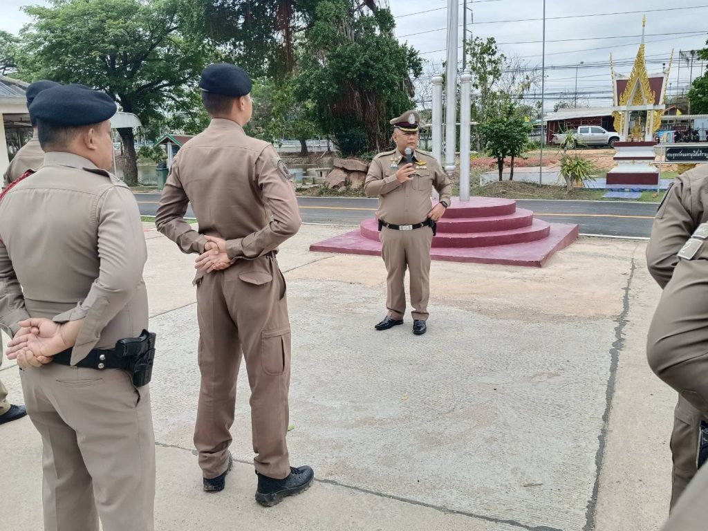 พ.ต.อ.กรภพ เนตไธสงสง ผกก.สภ.บ้านฝาง พ.ต.ท.เทียรไชย ชาวส้าน รอง ผกก.(สอบสวน) สภ.บ้านฝาง พ.ต.ท.ธราดล ดีแป้น รอง ผกก.ป.สภ.บ้านฝาง พ.ต.ท.สุรสิทธิ์ สูตรสุวรรณ สวป.สภ.บ้านฝาง นำข้าราชการตำรวจ สภ.บ้านฝาง เข้าแถวเคารพธงชาติ สวดมนต์ไหว้พระ กล่าวคำสัตย์ปฏิญาณตน และอุดมคติตำรวจ ตรวจจำนวน ตรวจเครื่องแต่งกาย ตรวจทรงผม ชี้แจงข้อสั่งการของผู้บังคับบัญชาและรับฟังข้อราชการประจำสัปดาห์ เเละได้พูดคุยเน้นย้ำสั่งการ ไม่ให้ข้าราชการตำรวจรับของกำนัลทุกชนิดจากการปฏิบัติหน้าที่ ให้ปฏิบัติหน้าที่ด้วยคุณธรรม ยึดอุดมคติตำรวจ ใช้ชีวิตอย่างพอเพียง