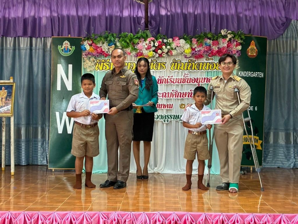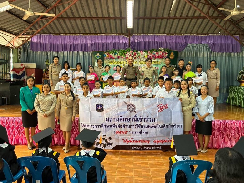 การมอบใบประกาศนียบัตรนักเรียนแดร์ ครูตำรวจ D.A.R.E. ให้นักเรียนชั้นประถมศึกษาปีที่ 4,5 จำนวน 19 คน ปีการศึกษา 2567/1 ณ โรงเรียนหนองแวงคุรุราษฎร์รังสรรค์ ต.บ้านเหล่า อ.บ้านฝาง จ.ขอนแก่น ตามโครงการ”การศึกษาเพื่อการต่อต้านการใช้ยาเสพติดในเด็กนักเรียน” ( D.A.R.E. )