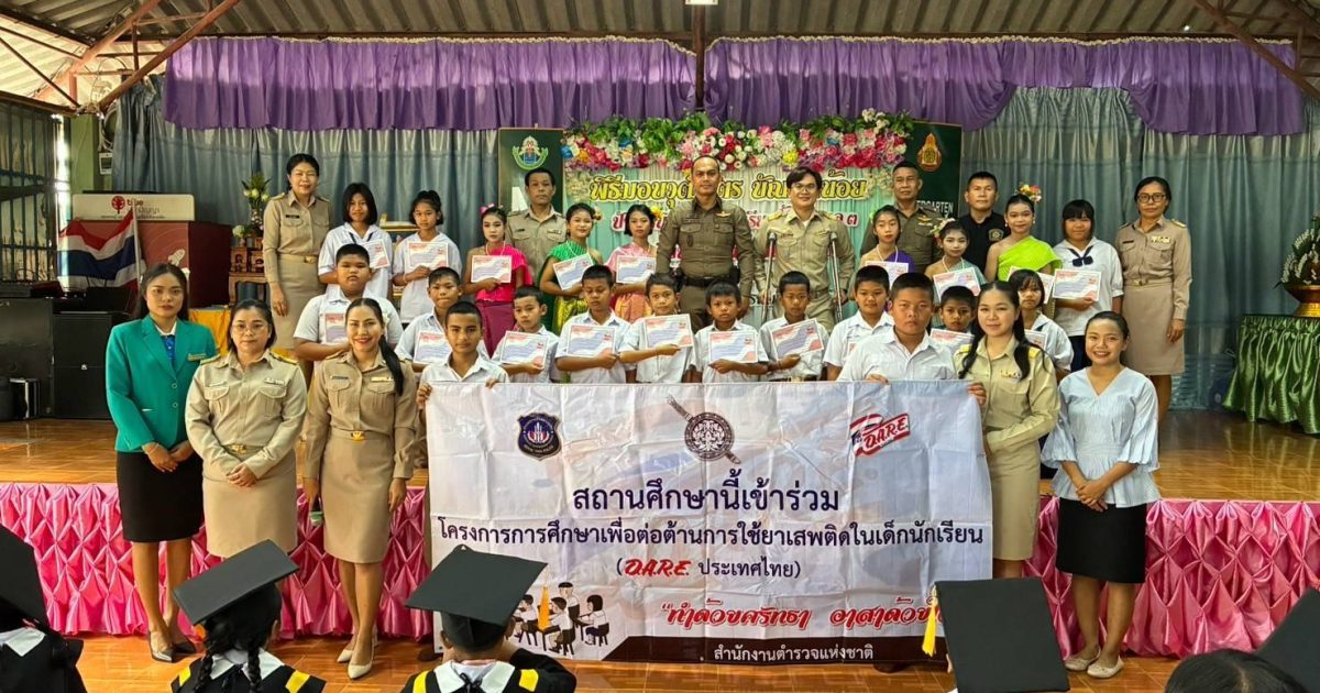 การมอบใบประกาศนียบัตรนักเรียนแดร์ ครูตำรวจ D.A.R.E. ให้นักเรียนชั้นประถมศึกษาปีที่ 4,5 จำนวน 19 คน ปีการศึกษา 2567/1 ณ โรงเรียนหนองแวงคุรุราษฎร์รังสรรค์ ต.บ้านเหล่า อ.บ้านฝาง จ.ขอนแก่น ตามโครงการ”การศึกษาเพื่อการต่อต้านการใช้ยาเสพติดในเด็กนักเรียน” ( D.A.R.E. )