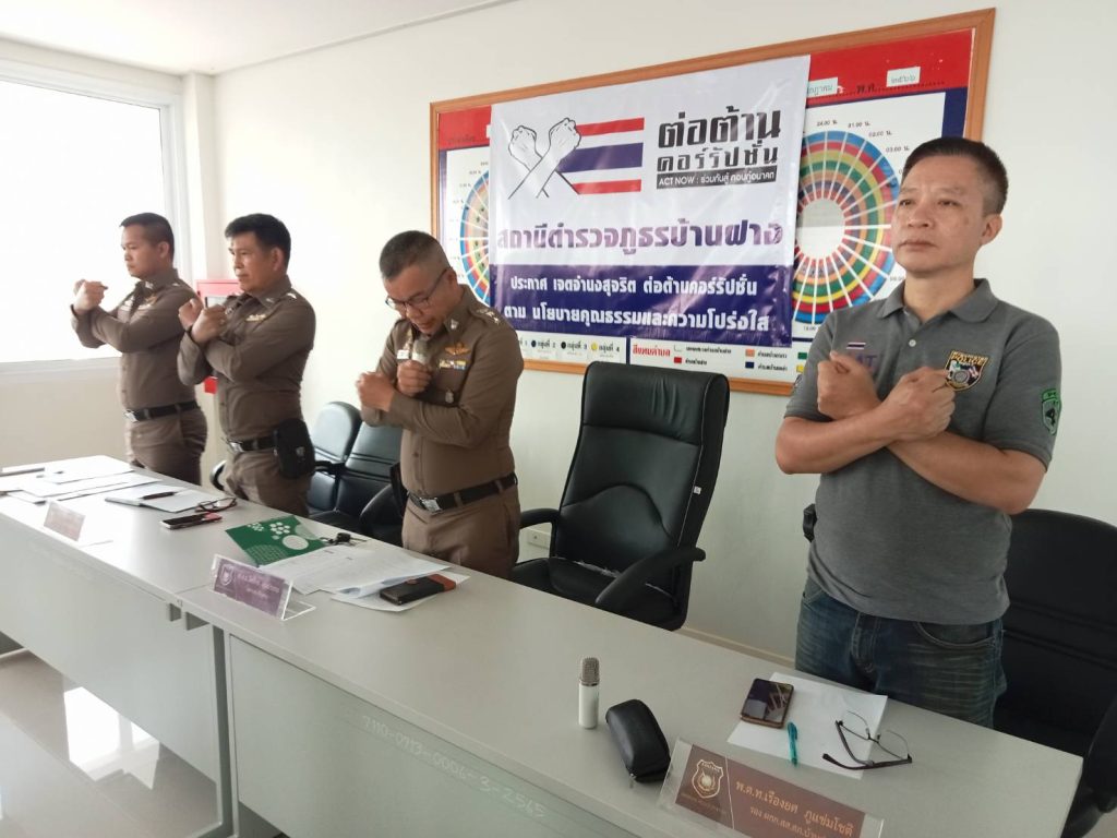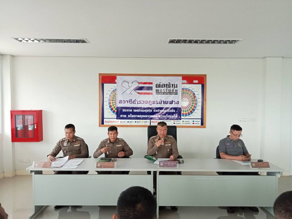 เมื่อวันที่ ๘ กุมภาพันธ์ 2567 เวลา 10.00 น. พ.ต.อ.อิทธิกร อุ่นประกอ ผกก. สภ.บ้านฝาง ได้ประชุมบริหารประจำเดือน กุมภาพันธ์ 2567 ข้าราชการตำรวจ สภ.บ้านฝาง และได้ประชุมอบรมเสริมสร้างคุณธรรมและความโปร่งใสในการต่อต้านการทุจริตและต่อต้านการรับสินบนทุกรูปแบบ โดยขอร่วมกันประกาศเจตนารามณ์ที่จะสร้างมาตรฐานด้วยความโปร่งใส สร้างองค์กรให้ปลดจากการทุจริตในการปฏิบัติหน้าที่ยึดวัฒนธรรมคุณธรรมในองค์กรที่จะปฏิบัติหน้าที่ด้วยความมุ่งประโยชน์ส่วนรวมของคนในสังคม มีคุณธรรม ความสัมพันธ์ส่วนตัว มีการสื่อสารภายในหน่วยงานที่ชัดเจนทุกระดับ เพื่อเป็นแนวทางในการปฏิบัติหน้าที่ภายในองค์กรรวมทั้งเป็นค่านิยมสำหรับองค์กรหรือสถานีตำรวจภูธรบ้านฝาง พึงยึดถือเป็นแนวทางปฏิบัติควบคู่กับกฎ ข้อบังคับอื่นๆ สำหรับที่จะสร้างองค์กรที่ใสสะอาดให้บริการด้วยความโปร่มใส เป็นธรรม ต่อประชาชน ผู้รับบริการและพัฒนาคุณภาพการดำเนินงานของสถานีตำรวจภูธรบ้านฝาง