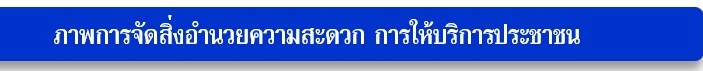 จัดสิ่งอำนวยความสะดวก ให้ประชาชนที่มาใช้บริการ น้ำดื่ม,หนังสือพิมพ์,ที่พักค่อยรอรับบริการ,ห้องน้ำ ชาย- หญิง ,ห้องน้ำคนพิการ ที่จอดรถสำหรับประชาชนมาติดต่อราชการ,ที่จอดรถสำหรับคนพิการทางขึ้นสำหรับรถเข็น เเละรถเข็น