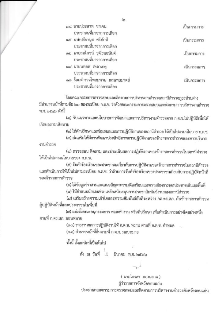 คำสั่งคณะกรรมการตรวจสอบและติดตามการบริหารงานตำรวจจังหวัดขอนแก่น