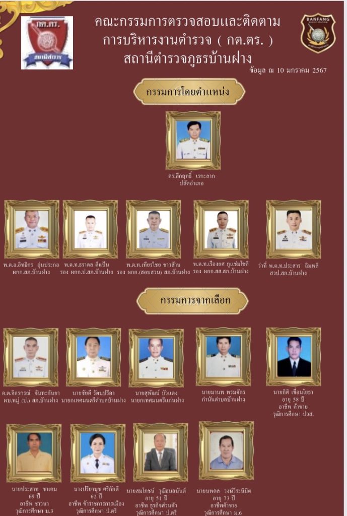 คำสั่งสถานีตำรวจภูธรบ้านฝางมอบหมายทำหน้าที่ในคณะกรรมการตรวจสอบเเละติดตามการบริหารงานตำรวจสถานีตำรวจภูธรบ้านฝาง